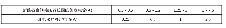 當(dāng)選擇裝置的規(guī)范時(shí),中間元件電流繞組JZ(i)的額定電流應(yīng)小于斷路器合閘接觸器線圈的額定電流。具體可按表2解。