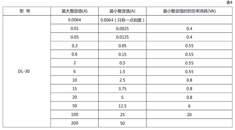 14.功率消耗在最小整定值處,繼電器的線圈所消耗的功率不超過表4的數(shù)據(jù)。
