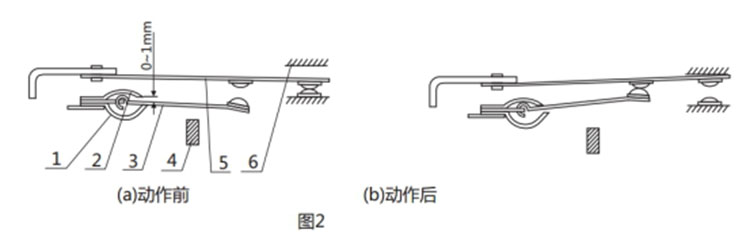 c、動作前,接觸片3靠在止擋1上,彈簧片2與接觸片3間的距離為0~1mm。