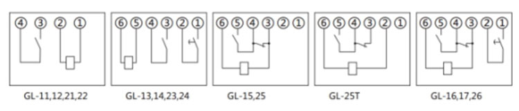 GL-13、14、23、24型繼電器具有一付動合主觸點(或一付動斷主觸點,需訂制)和一付由感應元件操作的延時信號觸點,其主觸點