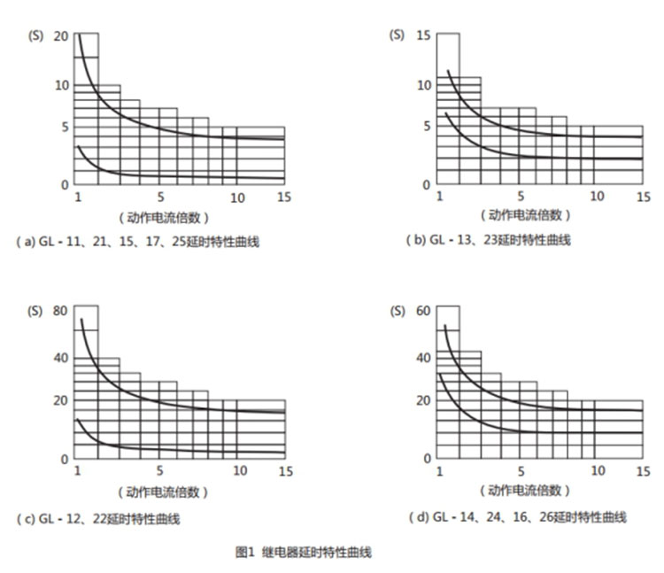 GL-11、12、21、22型繼電器具有一付動合主觸點(或一付動斷主觸點,需訂制),既具有反時限功能,也具有瞬動功能。
