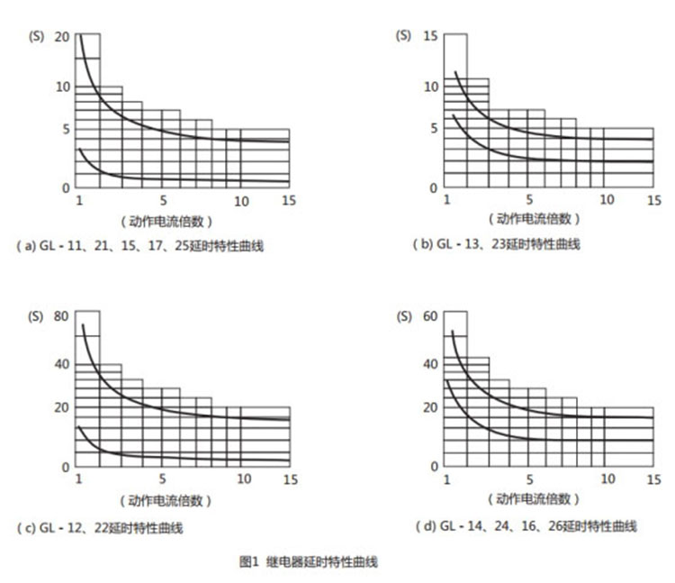 GL-11、12、21、22型繼電器具有一付動合主觸點(diǎn)(或一付動斷主觸點(diǎn),需訂制),既具有反時(shí)限功能,也具有瞬動功能。