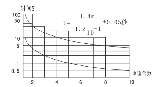 注:反時限特性曲線的選取,只能接表2規(guī)定的上下限之間選擇。本繼電器反時限延時通過過流延時開關(guān)可調(diào)整10倍動作電流時的 動作時間,例如:取10倍動作電流下時動作時間為0.5s,將過流延時的四位數(shù)字開關(guān)調(diào)整為00.50即可,如取10倍動作電流下延時4s,將過流延時的四位數(shù)字開關(guān)調(diào)整為04.00即可。(反時限延時也可以通過過流延時開關(guān)調(diào)整為2倍動作電流時的動作時間,具體由用戶定貨 時提出,出廠時一般以10倍為準(zhǔn)。)