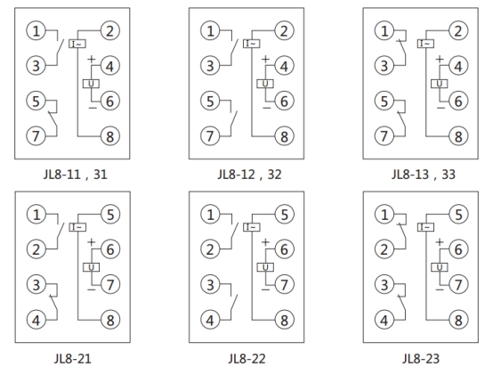 JL8-22系列集成電路電流繼電器內(nèi)部接線圖及外引接線圖(正視圖)