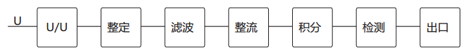 由電壓-電壓變換器將輸入電壓變換成適當(dāng)?shù)碾妷?,通過動作值的整定和有源帶通濾波,經(jīng)過全波整流,利用其脈動電壓進(jìn)行比較積 分,由檢測器對積分電平時行判斷,當(dāng)積分電平超出檢測電平時,檢測器輸出高電平,驅(qū)動出口繼電器動作。