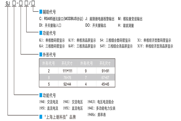 4、單相數(shù)顯交流電流表SJ194I-4X1產(chǎn)品命名及含義