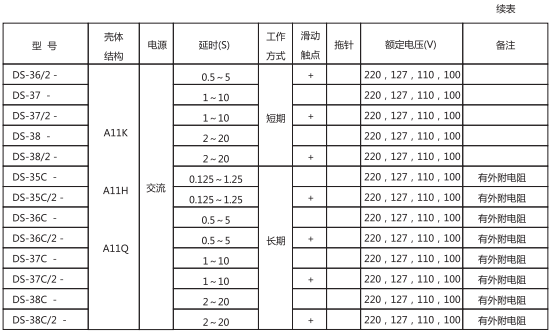對于交流短時(shí)工作的: DS-35 , DS-36 , DS-37 , DS-38不大于20VA。