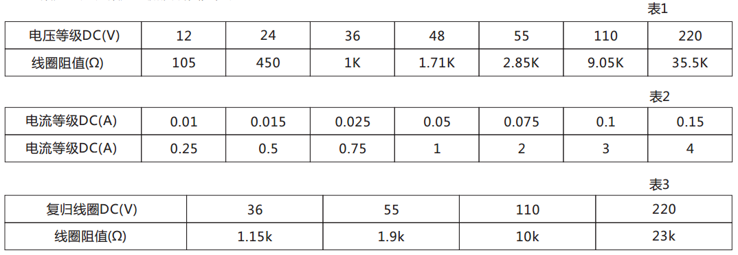 4、線圈功耗:電壓型≤1.5W,電流型≤0.1W,復(fù)歸電壓≤2W