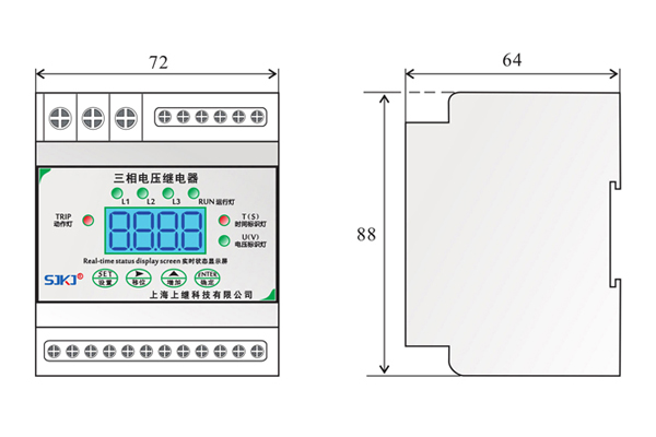 1) 本繼電器采用專用芯片、集成電路為微機型繼電器,數(shù)碼管顯示監(jiān)測電壓。