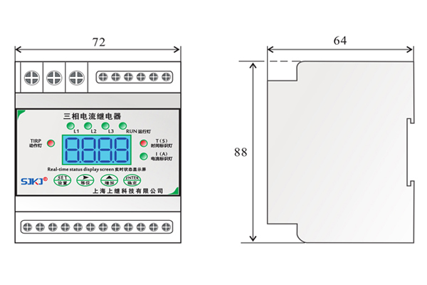 , 無數(shù)值顯示。繼電器達(dá)到所設(shè)定值,動(dòng)作后,由TIRP動(dòng)作燈會(huì)點(diǎn)亮,實(shí)際線路電流低于或高于所設(shè)定的返回值,指示燈切換回來。正常運(yùn)行情況下,RUN運(yùn)行燈、電流設(shè)置表示燈常亮。L1、L2、L3來回切換運(yùn)行。當(dāng)輸入電流任意一相滿足動(dòng)作條件,繼電器動(dòng)作,電流標(biāo)識(shí)燈熄滅,表示延時(shí)時(shí)間已到動(dòng)作。當(dāng)輸入接近動(dòng)作條件時(shí),繼電器進(jìn)入動(dòng)作預(yù)備狀態(tài),所有芯片資源用來計(jì)算輸入值,一旦滿足條件,立即啟動(dòng)計(jì)時(shí),繼電器設(shè)有啟動(dòng)量連續(xù)判斷功能和突變量連續(xù)判斷功能,能夠有效迅速的判斷輸入值,并躲過短時(shí)干擾。