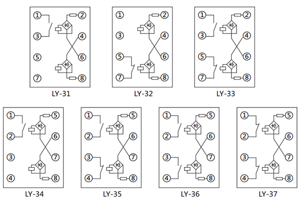 LY-33電壓繼電器內(nèi)部接線(xiàn)及外引接線(xiàn)圖(正視圖):
