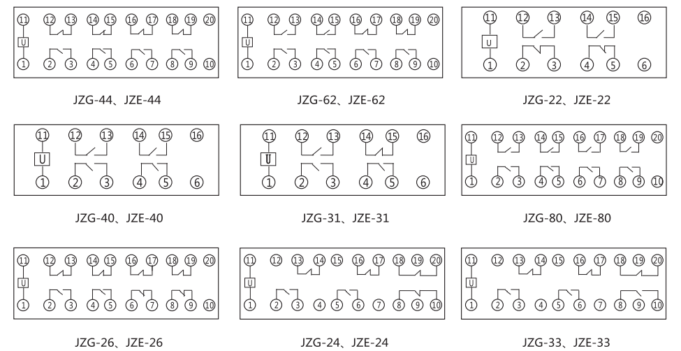 JZG-44卡軌式靜態(tài)中間繼電器內(nèi)部端子外引接線圖